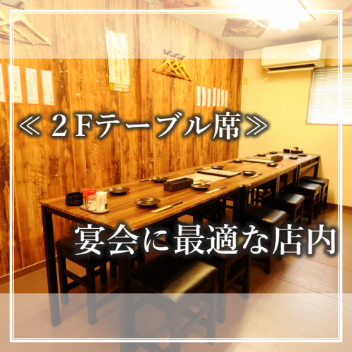 ≪2Fテーブル≫2階のお席です。中規模の宴会利用も可能。ご利用用途に合わせてテーブルのセッティングをさせていただきます。